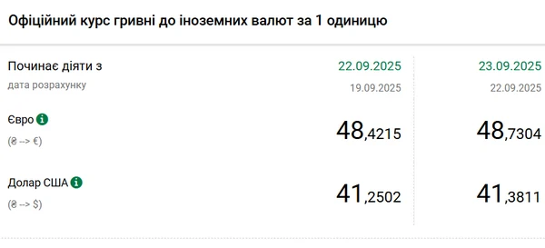 Национальный банк Украины (НБУ) повысил курс доллара к гривне. Доллар дорожает четвертый день подряд. Об этом сообщает РБК-Украина со ссылкой на данные на сайте регулятора. Официальный курс на 23 сентября 2025 года установлен на таком уровне: 41,3811 гривен за 1 доллар (+0,1309 грн). Официальный курс евро составит 48,7304 гривен за 1 евро (+0,3089 грн).