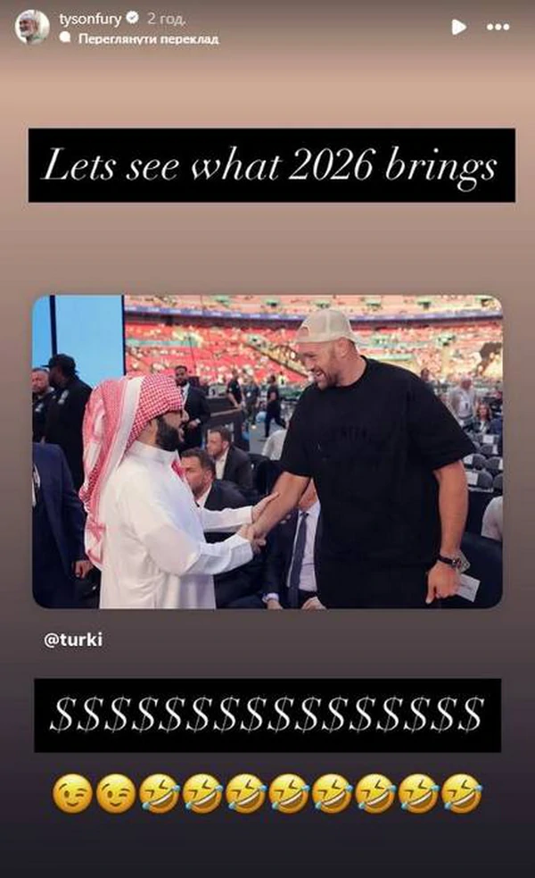 Экс-чемпион мира в супертяжелом весе Тайсон Фьюри прокомментировал слова руководителя Генерального управления Саудовской Аравии по развлечениям Турки Аль аш-Шейха относительно его возвращения в спорт. Британский боксер на своей странице в Instagram отреагировал на заявление официального лица о намерении вернуться на ринг в следующем году и возможности провести трилогию с Александром Усиком. "Цыганский король" не дал определенного ответа на эту информацию, но подчеркнул, что стоит подождать, что произойдет в будущем. "Посмотрим, что принесет 2026 год $$$$$$$$$$$$$$$", - написал Фьюри. | |
