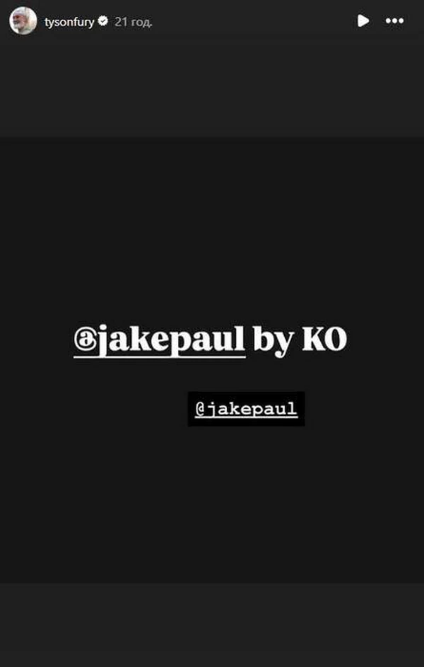 Бывший чемпион мира в супертяжелом весе Тайсон Фьюри поделился своим мнением о поединке между еще одним экс-чемпионом дивизиона Энтони Джошуа и блогером Джейком Полом. Британский боксер, возможно, решил подшутить над своим соотечественником и потенциальным оппонентом, отметив, что шоумен одержит победу нокаутом. "Пол победит нокаутом", - написал Фьюри в Instagram. Как известно, поединок Джошуа с Полом запланирован на 19 декабря в Майами, США. | |