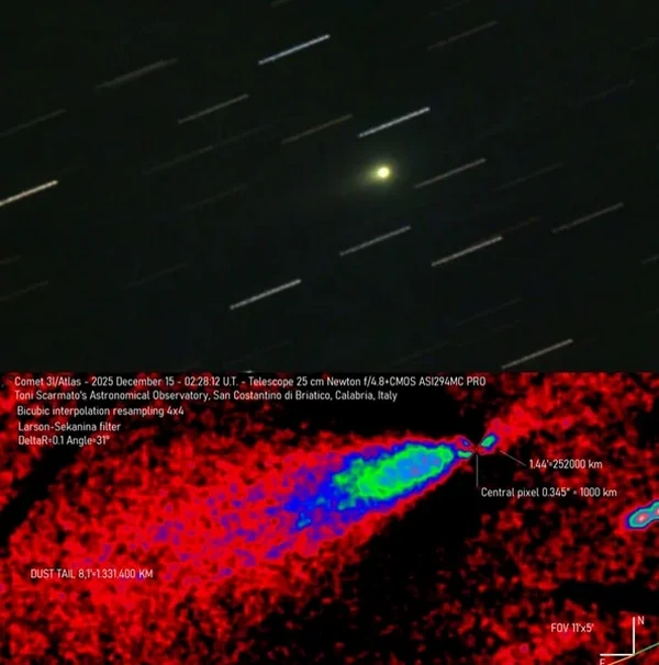 Межзвездный объект 3I/ATLAS выпустил отросток длиной 500 000 км: что это, пока загадка (фото) | |