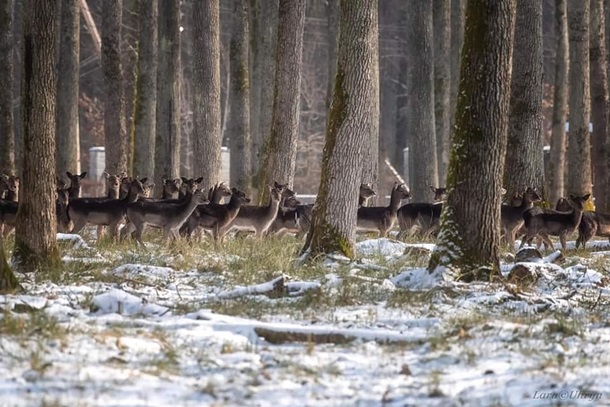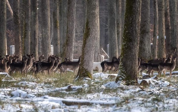 Фотограф сделала снимки редкой белой лани в стаде диких животных, которые живут в лесах Мукачевского района.