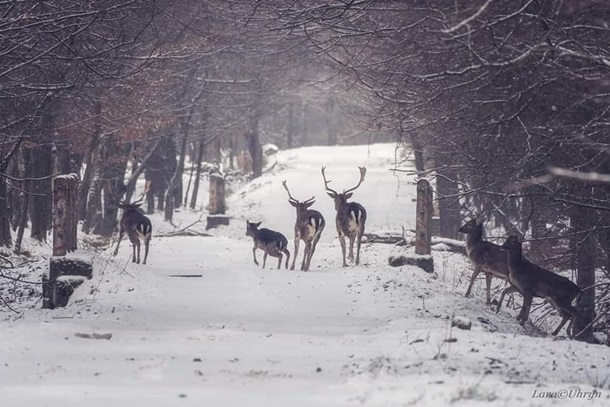 На Закарпатье в районе села Горбок фотограф Лариса Угрин сняла редкую лань-альбиноса в стаде. Фотографии опубликованы на Facebook-странице Ларисы Угрин.