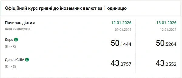 Нацбанк продолжает поднимать официальный курс валюты до рекордных значений. Так, новый максимум на 13 января — доллар по 43,26 гривен, а евро — по 50,53 гривны. Об этом сообщает РБК-Украина со ссылкой на данные на сайте регулятора. Курс валют: главное