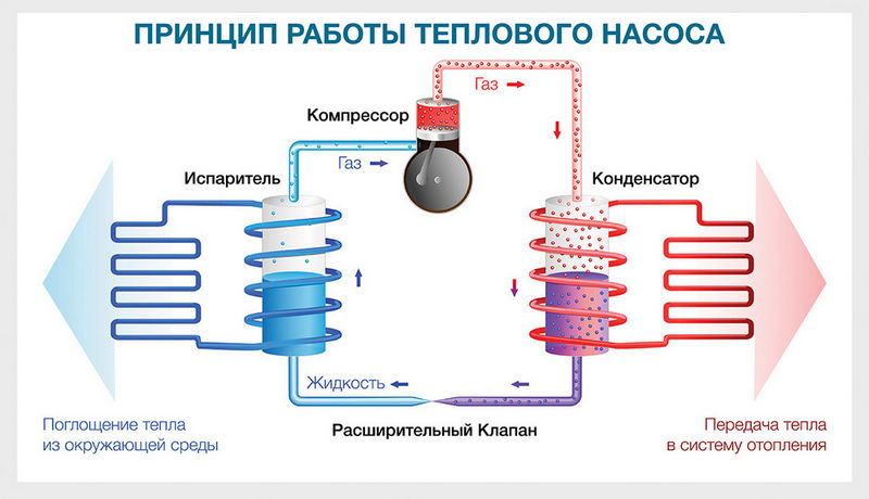 Тепловой насос: типыВыбрать тепловой насос можно из 4 видов. Рассмотрим их ниже.Самый популярный насос работает по принципу воздух-воздух. Это экономичный вариант, в котором подача тепла происходит сверху. В насосе есть компрессор, куда поступает теплый фреон. Тепловой насос воздух-вода больше подходит для теплого климата, их устанавливают в тандеме с традиционной системой отопления. Схемы грунт-вода применяют в надежно утепленных домах, тепловой насос берет энергию грунта для отопления. Насос работает благодаря тому, что земля на глубине 2+ метров в течение года держит одинаковую комфортную температуру, используется также для, кондиционирования, охлаждения дома, нагрева воды. Наименее распространен тепловой насос вода-вода. Для того, чтобы установить такой насос, придется провести сложные земельные работы, а сам геотермальный тепловой насос стоит дорого, поэтому большинство домовладельцев не готовы рисковать, устанавливая этот тепловой насос. Начальные и ежемесячные затратыТепловой насос надежного бренда стартует в стоимости от 50 тысяч гривен. Экономить на нем не стоит, так как это высокотехнологичное оборудование, регулярные поломки дешевого теплового насоса выльются в гораздо более круглую сумму в последствии.Для подсчета ежемесячных трат возьмем дом, площадь которого составляет 250 кв. м, а годовая теплопотеря — 39 МВт. Если отопительная система питается за счет электричества, можно пойти двумя путями — закупать электроэнергию по общему тарифу или оформить льготный тариф. Льготный предусматривает 3600 кВт•час по 0.9 грн. превысить лимит, тариф составляет 1.68 грн за кВт•час. За весь отопительный сезон понадобится 14444 кВт•час, что составит 13 тысяч гривен. По стандартному тарифу придется заплатить 24 тысячи 265 гривен. В комбинации с газовым котлом, тепловой насос обойдется еще в полтора раза дороже, чем оплата по стандартному тарифу. Преимущества и недостатки тепловых насосовСреди преимуществ теплового насоса выделим следующие.